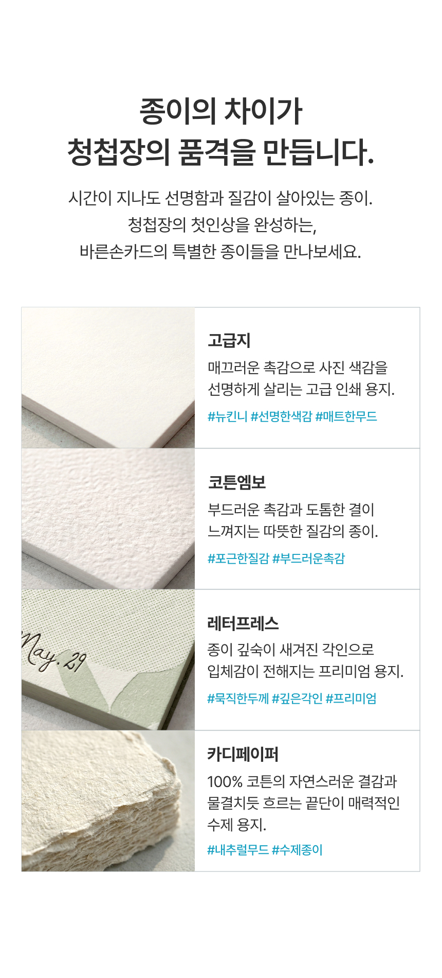 - 샘플, 제작, 추가 주문 별로 제작 공정에 따른 색상이나 용지의 미세한 차이가 있을 수 있어요.